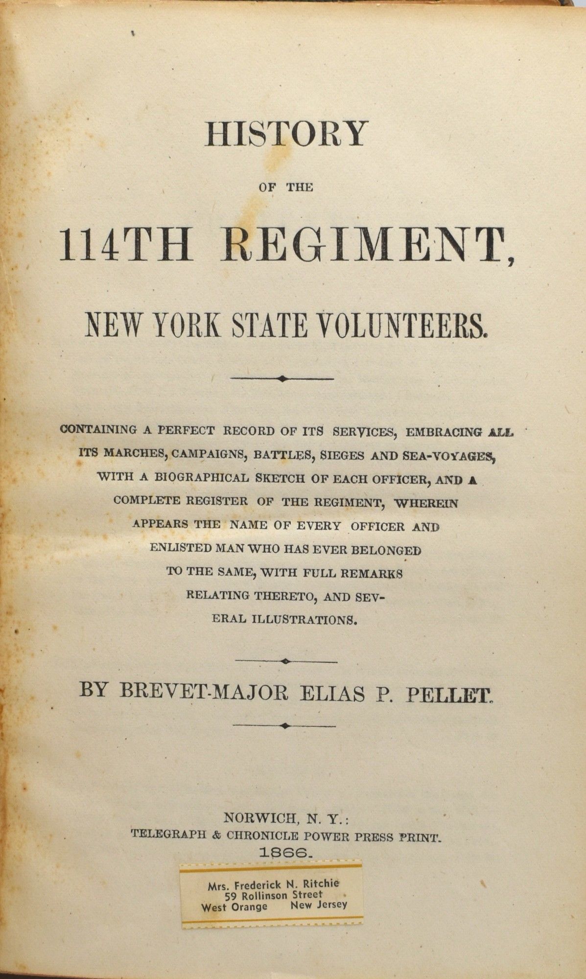 HISTORY OF THE 114th REGIMENT, NEW YORK STATE VOLUNTEERS (PRESENTATION COPY)