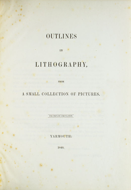Yarmouth: for Private Circulation, 1840. First edition, one of 100. 51 full-page lithographs, printed by Graf of London . Text printed by C. Sloman of Yarmouth. [4] ,94, [4] pp. 1 vols. Folio. Original cloth, stamped in blind and gilt, some minor foxing. With the Arms of the Duke of Bedford. First edition, one of 100. 51 full-page lithographs, printed by Graf of London . Text printed by C. Sloman of Yarmouth. [4] ,94, [4] pp. 1 vols. Folio.