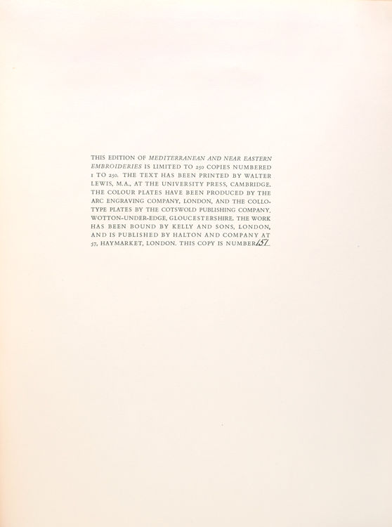 Mediterranean & Near Eastern Embroideries from the Collection of Mrs. F. H. Cook. [Foreword by Beatrice Cook. Feburary 1935]