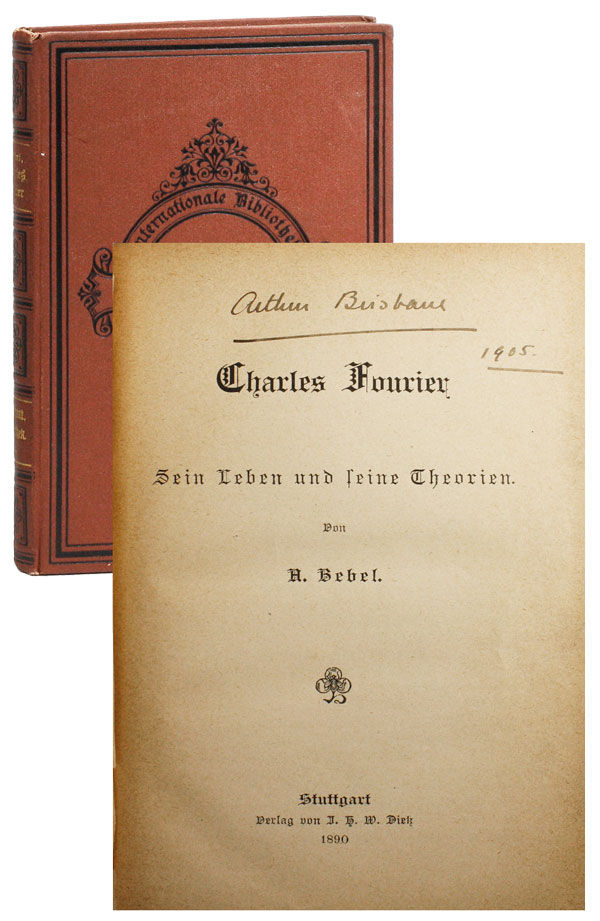 Provenance: Newspaperman Arthur Brisbane's copy with his signature dated 1905 on title page. Quite possibly originally in the possession of Brisbane's father Albert Brisbane (1809-1890), another utopian socialist who studied with Fourier in Paris during the early 1830s and would go on to popularize Fourierism in the United States, acting as editor of the Fourierist journal The Phalanx (1843-1845) and founding the Fourierist Society in New York (1839).