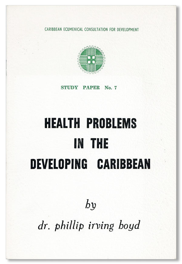 Bridgetown, Barbados: Caribbean Ecumenical Consultation for Development, [1971]. First Edition. Slim octavo (21.85cm); printed wrappers, stapled; 11pp. Light wear to extremities, else Near Fine. Issued as "Study Paper No.7," dealing chiefly with health issues in developing Caribbean nations in two main areas: health problems which actually cause sickness and death, and "those which are related to the services that the governments have set up for the maintenance and restoration of community health.