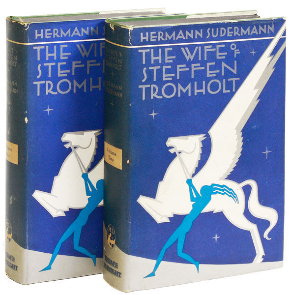 New York: Horace Liveright, 1929. First Edition. First Printings. 2 octavo volumes; mint green cloth, titled and blocked in black and yellow on spines and front panels; black topstains; dustjackets; 356, 426pp. 8pp publisher's catalog for Fall, 1929 laid in. Minute wear at crowns, trifle rubbing to front panel of vol.2, else Fine. Jackets are lightly sunned at spines, with some minor edgewear, a few short tears, and a small nick at the crown of vol.2; small triangular snag to rear panel of vol.1; Very Good+ overall, nicely preserving the attractive cover art by Paul Wenck. Lacking the publisher's original slipcase. One of the last of the German dramatist's novels, translated into English by Eden and Cedar Paul and published by Horace Liveright the year after his death. "Sudermann portrays the conflict between a man's craving for unlimited freedom and the longing for a soul-mate and the cheerful anchorage of a home.