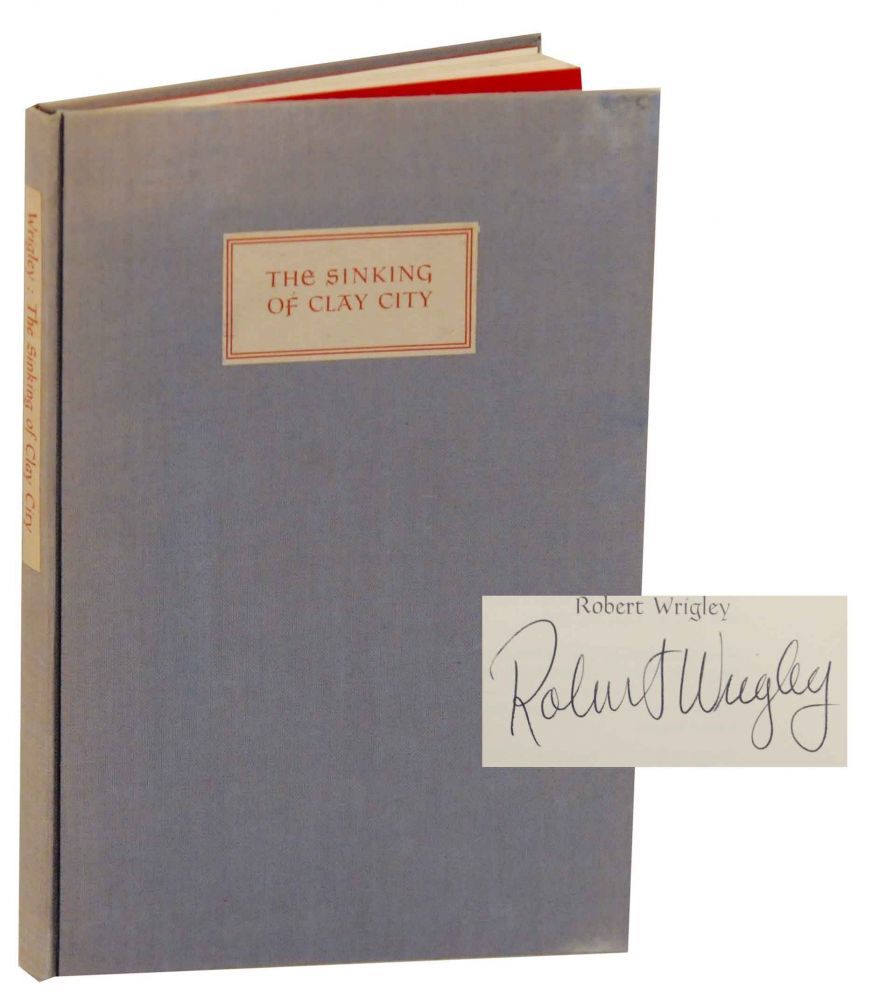 Port Townsend, WA: Copper Canyon Press, 1979. First edition. Hardcover. Limited edition of only 50 clothbound copies. A collection of poems. A close to near fine copy in cloth boards with paper labels to the spine and front board and with some slight fading as well. Signed by Wrigley. Uncommon.