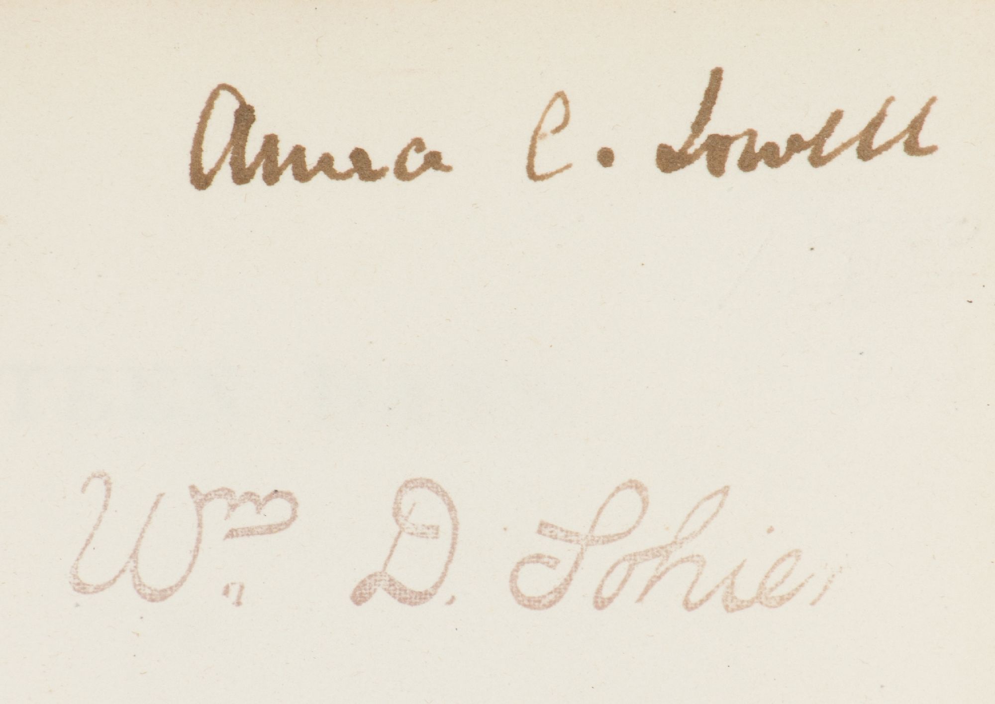 Boston: Ticknor and Fields, 1866. Hardcover. Very Good. First edition. 299pp. Original white cloth gilt ruled, gilt-stamped spine. Spine and edges tanned, spine ends chipped, very good copy. Signed on the front fly by Anna C. Lowell and with the ownership stamp of Wm. D. Sohier. Anna Cabot Lowell was cousins with Susan Cabot Lowell who was married William D. Sohier on October 13, 1846. Scarce, lovely association copy.