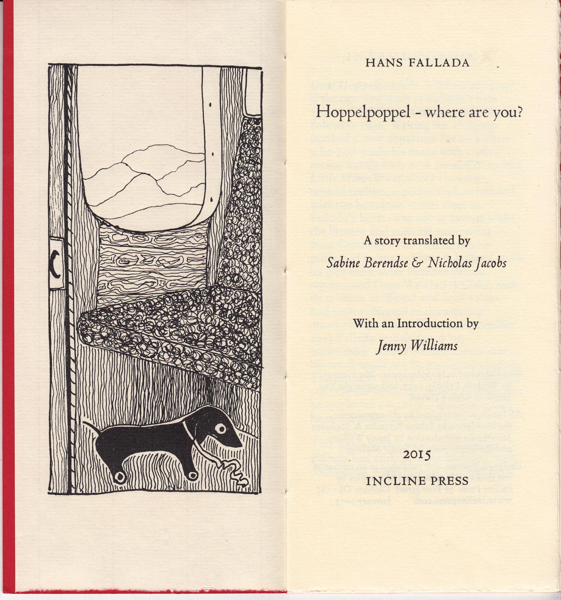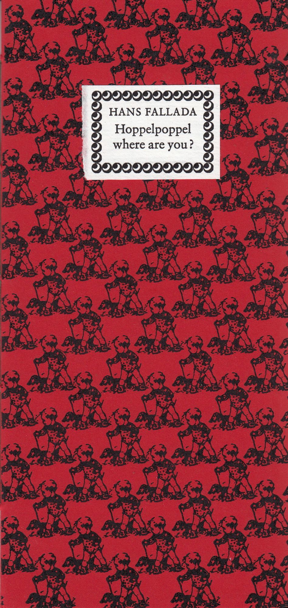 Oldham, England: Incline Press, 2015. Paperback. Fine. Paperback. Limited Edition of under 250 copies. Out of Print. Hans Fallada (1893-1947) was a famous German writer in the first half of the 20th century. His most significant work was the 1947 novel Every Man Dies Alone, written by Fallada in a feverish heat in only twenty-four days, dying just weeks before its publication. This Anti-fascist novel was based on a true story of a couple whose grief for their murdered son led them to launch a clandestine resistance campaign in Nazi Germany. In her new introduction for this translation, Jenny Wilson says that Fallada turned to writing for children in the 1930s when his novels came under scrutiny by Nazi authorities. Among his works for children was this charming and poignant story of young Tom and his beloved stuffed dog, Hoppelpoppel. This 21st New Year Book from the Press is printed in Sabon and Centaur types on Zerkall Paper. Frontispiece illustration by Jennie Malbon. Bound in pred paper wrappers with decorative covers and paper title label. 4 x 8.5 inches. In Fine Condition. 18 pages. PRI/032415.