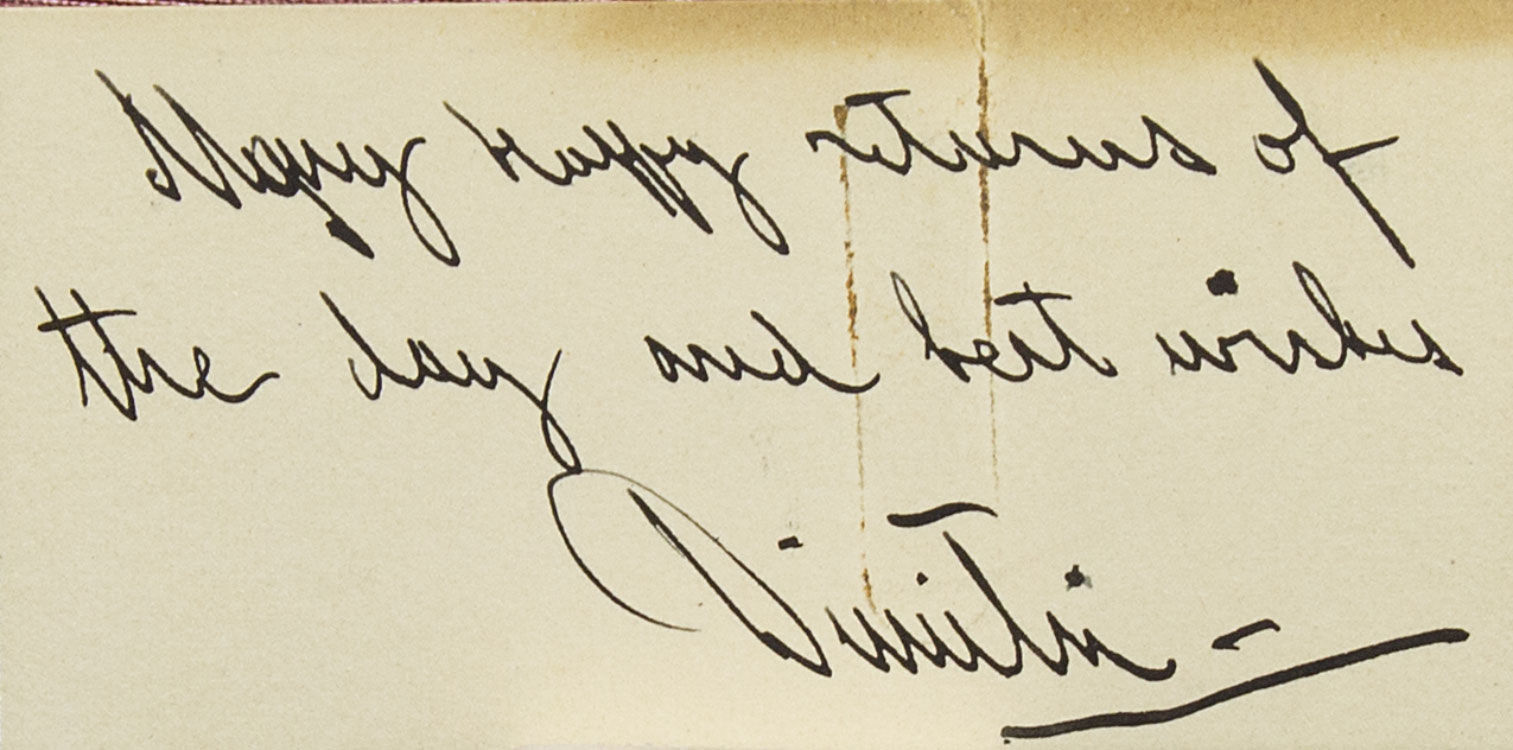 London: Kegan Paul, 1914. With 36 colored plates after the original illustrations by Henry Alken. 401 pp. 1 vols. 8vo. Half red morocco and cloth, spine gilt, t.e.g. Near fine (front joint a little rubbed). With 36 colored plates after the original illustrations by Henry Alken. 401 pp. 1 vols. 8vo. Handsome standard edition of this classic sporting work, with the small engraved card of Prince Dimitri de Russie (1901-1980, nephew of tsar Nicholas II), and his handwritten birthday wishes, “Many happy returns of the day, and best wishes Dimitri” [with a flourish]. Tooley 65 (1st edition, 1842); Biscotti, Six Centuries of Foxhunting, p. 18