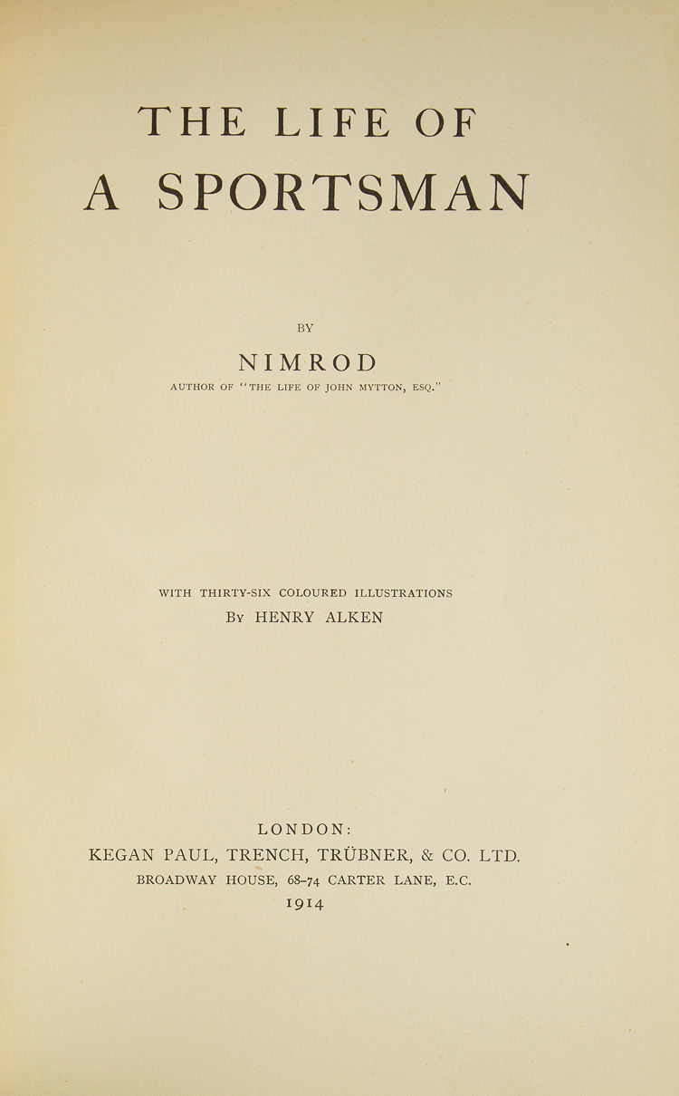 - With 36 colored plates after the original illustrations by Henry Alken. 401 pp. 1 vols. 8vo