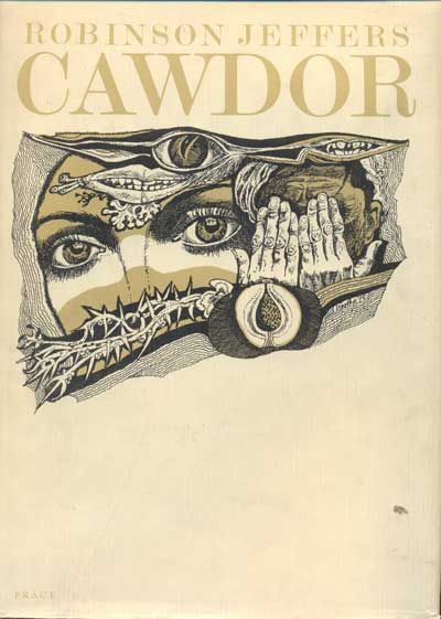 Práce, Praha, 1979. First edition thus. Hardcover. Josef Liesler. 174pp. Quarto [30 cm] Black cloth over boards with gilt and blind stamped titles on the spine and front cover. Very good. The covers are a bit warped, and the edges of the spine and covers are lightly rubbed and bumped. The half title page is partially detached. The dust jacket is in very good condition, with intermittent small closed and open tears in the edges, and a small stain on the front panel. Preface by Kamil Bednar. Illustrated by Josef Liesler. A Czech language edition of Cawdor. This work adjusts the Hippolytus-Phaedra theme to fit the Big Sur coast.
