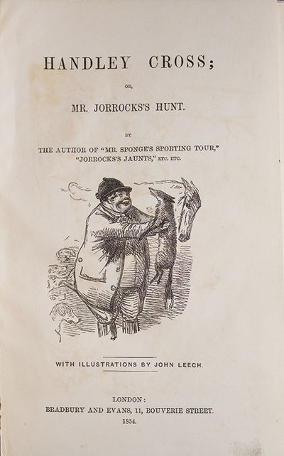 London: Bradbury and Evans, 1854. First Edition. Hand colored frontispiece, 16 hand colored steel engravings, and numerous woodcut text illustrations by John Leech. 1 vols. 8vo. Original tan pictorial cloth, gilt, some cover wear, else fine, in leather-backed box. First Edition. Hand colored frontispiece, 16 hand colored steel engravings, and numerous woodcut text illustrations by John Leech. 1 vols. 8vo. Biscotti, Six Centuries of Foxhunting, p. 362