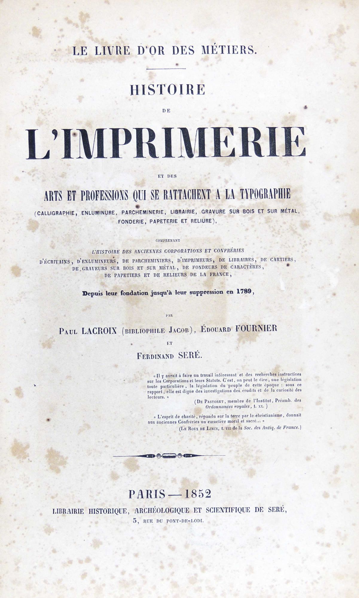 Le Livre d'or des Metiers. Histoire de L'Imprimerie et des Arts et Professions qui se Rattachent a la Typographie. [The Golden Book of Trades. The History of Printing and Arts and Professions that are related to the Typography]