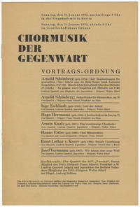 An 8-page program booklet for two concerts, "Chormusik der Gegenwart," Berlin, afternoon and evening of January 31, 1932, under the auspices of the Deutscher Arbeiter-Sängerbund, including op. 35. First Edition of the complete cycle, possible first issue. Rufer (E), pp. 58-60. GA B/18/2, pp. 223-24.