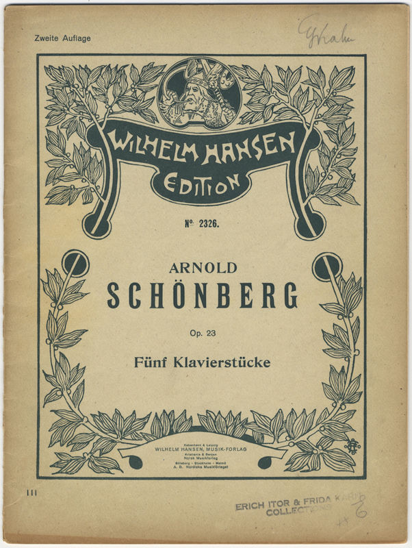 Erich Itor Kahn (1905-1956) studied at the Hoch'sches Konservatorium in Frankfurt. An early champion of Schoenberg, he gave the world premiere of the composer's piano piece op. 33a; he also studied the present op. 23 cycle early on. The notational corrections are of particular interest.