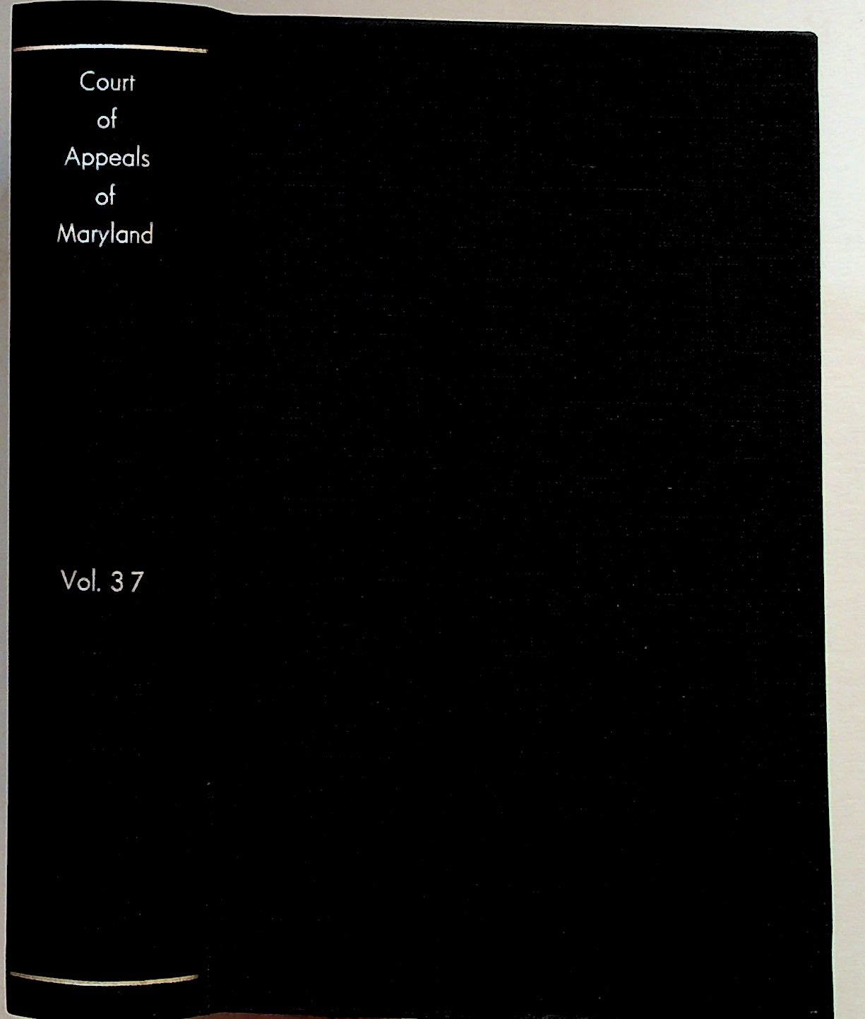 Reports of Cases Argued and Determined in the Court of Appeals of Maryland. Vol. XXXVII. Containing Cases in October Term, 1873