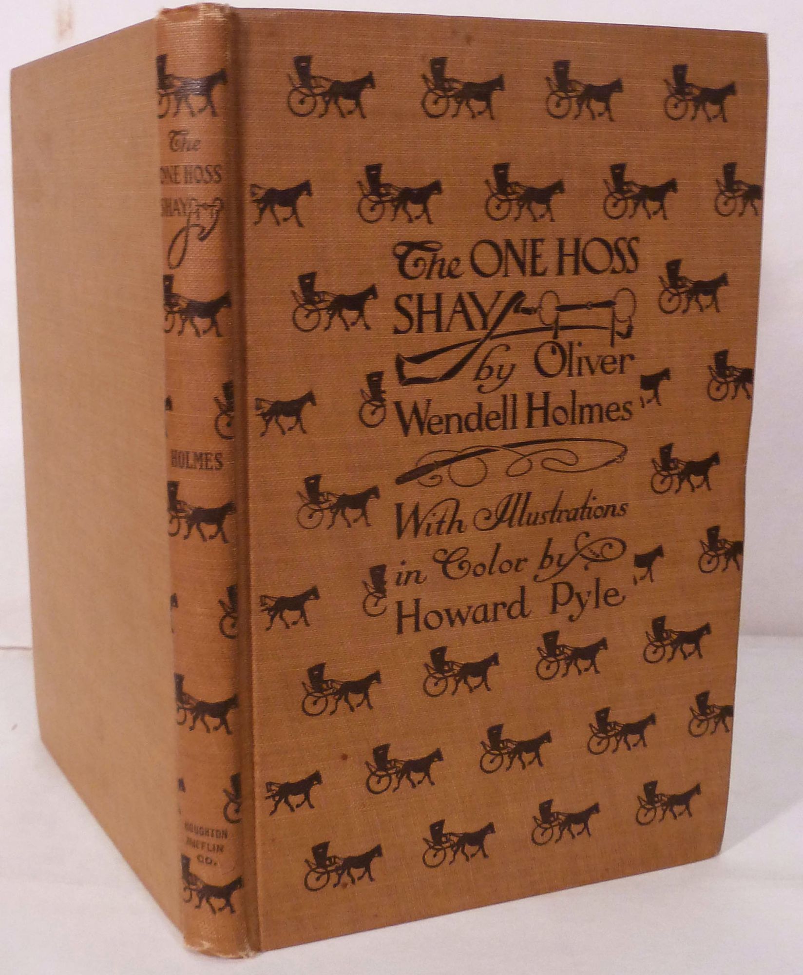 Boston & New York: Houghton Mifflin, 1905. New Edition. Hardcover. Orig. decorated cloth. Near fine. Pyle, Howard. 80 leaves printed recto only. 21 x 14 cm. Sixty-eight color lithographs by Howard Pyle. Reissue of Pyle's edition without color, first published 1891. "Mr. Pyle has practically redrawn in color his own original illustrations, with results that give the volume an additional charm." Early 20th century owner card on free endpaper discussing her pleasant rides in one hoss shay's. Clean, bright copy, slight rubbing to spine ends.