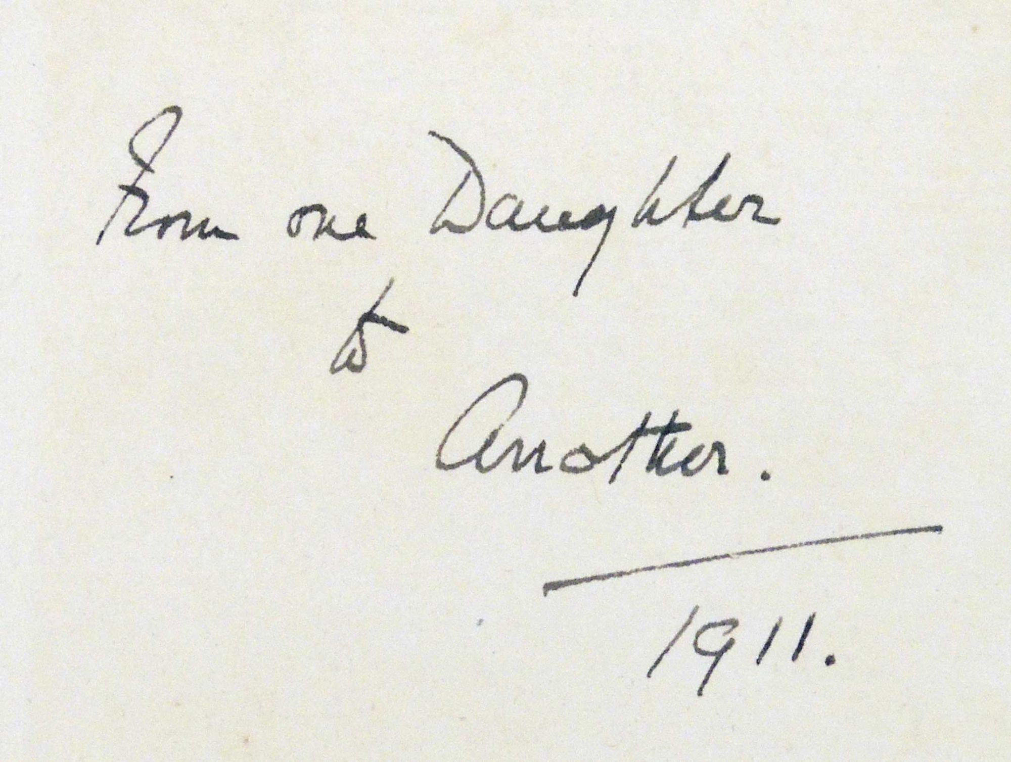 London: Ballantyne, 1911. Hardcover. Very Good. Hardcover. First Edition. Scarce. Presentation copy, possibly from the author, inscribed "From one daughter to another 1911." English author Mabel Greenhow Kitcat also known as Mabel Murray Hickson (1859 - 1922) contributed short stories to many periodicals during the 1890s. She also wrote a short novel and some poetry. Bound in original white cloth spine with blue cloth covered boards titled in gilt on the spine and front cover. Light soiling to spine and boards, but clean overall. Slight offsetting to endpapers, else clean interior. 52 pages. POE/052815.
