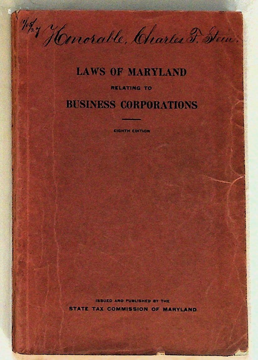 State Tax Commission of Maryland, 1927. Paperback. Very Good. Paperback. 8th Edition. Previously owner was the Honorable Charles F Stein (1866-1939) who was Associate Judge of the Supreme Bench of Baltimore City from 1921-1936. His signature is on the front wrapper. Brown paper wrappers with black title to front wrapper. Minor creasing to exterior. Ephemera laid in. Title page is browned as a result of the ephemera. Else is clean and bright. Index, 158 pages. MD/060215.