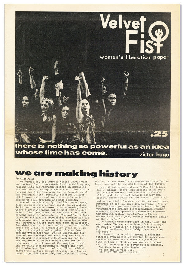 Velvet Fist: Women's Liberation Paper. Vol I, no 1 - Vol 2, no 3 (Sept. 1970 - April 1972, unbroken run)