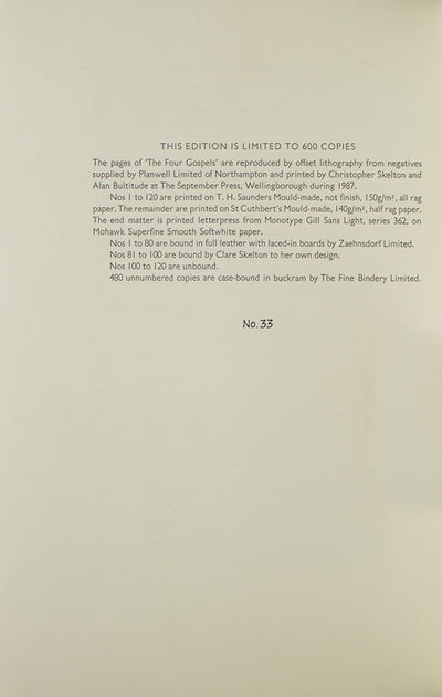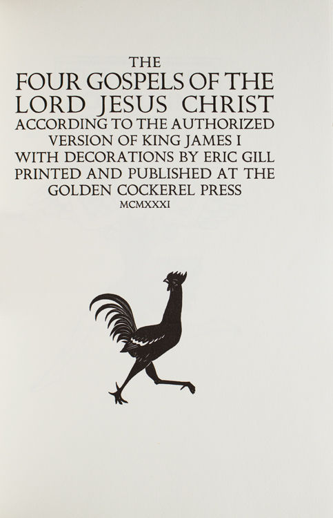 The Four Gospels of the Lord Jesus Christ, According to the Authorized Version of King James I with decorations by Eric Gill; printed and published at the Golden Cockerel Press, MCMXXXI