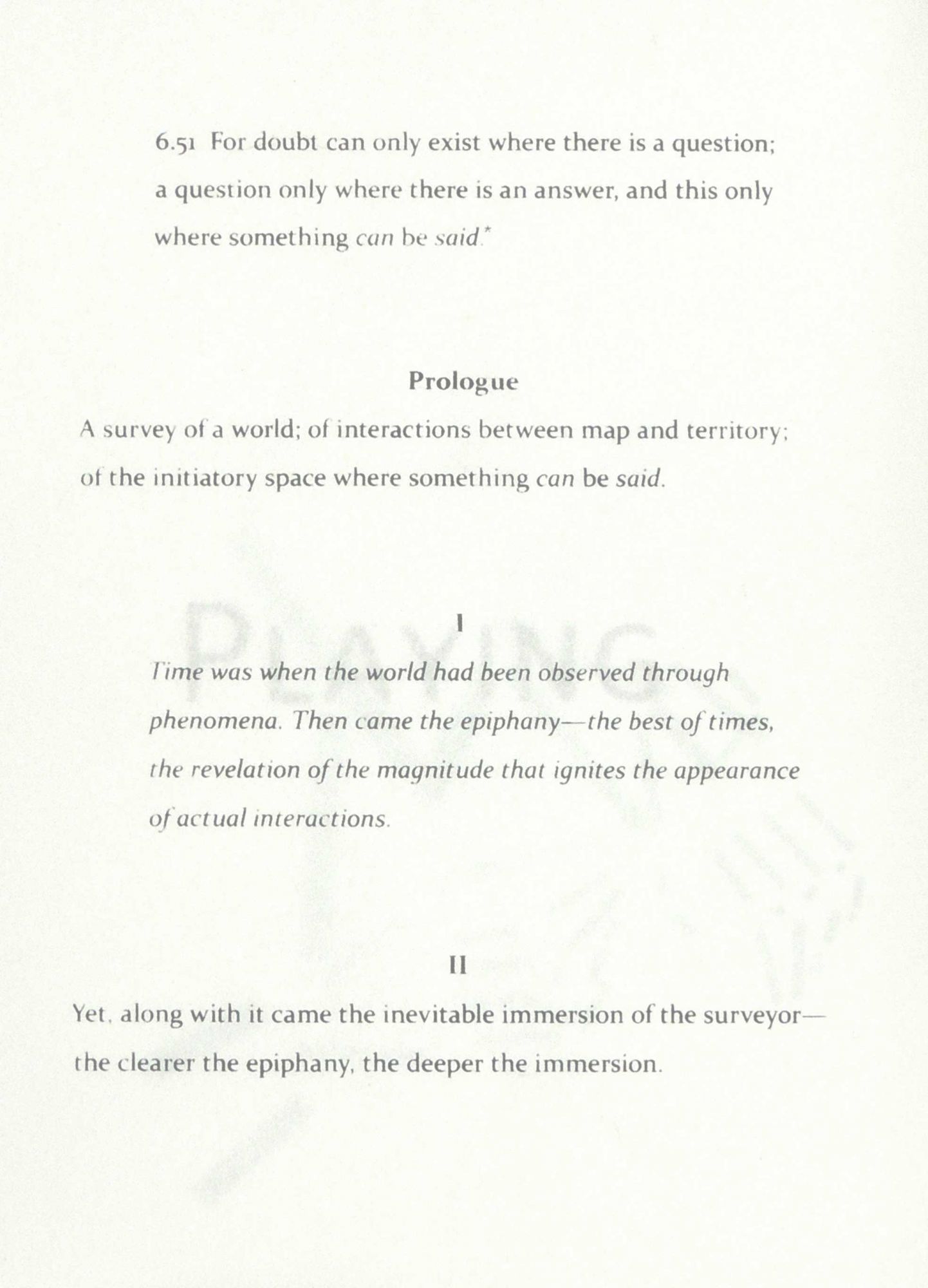 Washington DC: Na'ama Zussman, 2015. Hardcover. Fine. Hardcover. Number 7 of 12 copies. A beautifully conceived and produced book from Na'ama Zussman, a powerful new book artist originally from Israel. She describes her book: "A Survey of a World scrutinizes interactions between map and territory, along with memory and reality, whether of the surveyor herself - the creator of this artist's book - or of other people. It surveys and seeks to capture the doubt in the role of the surveyor, and the inevitable immersion in this role. A Survey of a World portrays the endeavour of grasping the moment ahead of the impression of the territory, when doubt turns into representation." Na'ama's exquisite images are interwoven with her evocative text as she ponders interactions, memory, and reality. Bound in brown Cialux book cloth, with a goatskin leather spine. The images throughout the book were created through the screen printing process and are done on lovely Thai Kozo paper. The text is composed in Meta Capitals and Constantia. The book is housed in a surveyor's bag made out of grey cashmere, with a leather string. The colophon is in a pocket on the back of the bag. 7 1/4 x 9 3/4 inches. Unpaginated. ARTISTS/081915.