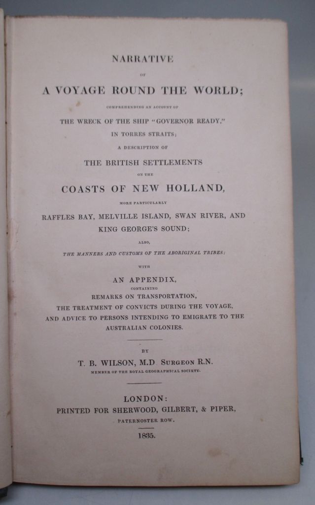 Narrative of a Voyage Round the World; comprehending an account of the wreck of the Ship 'Governor Ready' in Torres Straits; a description of the British Settlements on the coasts of New Holland.Swan River, King George's Sound; Also, the Manners and Customs of the Aboriginal Tribes