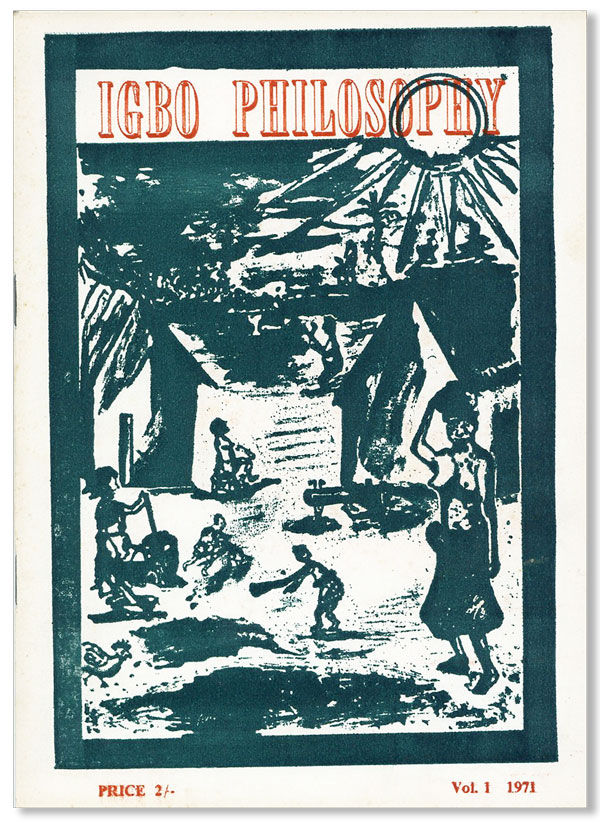 [Enugu, Nigeria: Igbo Philosophical Association, 1971]. First Edition. Octavo (22cm.); original white pictorial staplebound wrappers printed in green and red; 35pp. Light toning to wrapper extremities and textblock, else Very Good or better. Introductory number of a projected journal on Igbo culture and philosophy, though we have found no evidence that any other issues were every published.