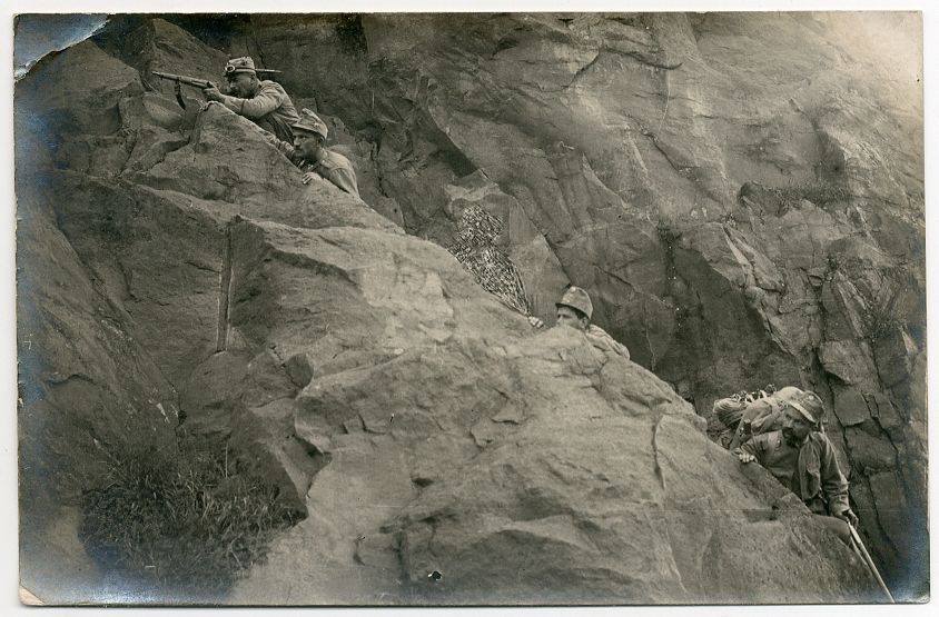 Taken and/or collected by an officer in the Austro-Hungarian K.K. Landwehr Infanterie Regiment "Hohenmauth“ Nr. 30, under the control of Colonel Frantisek Waldek, which saw service in the territories of modern Poland, Ukraine, and Romania until the Russian withdrawal in 1917. They were subsequently transferred to the Italian Front in the Dolomite Mountains. The earliest photographs are 12 images of the war in Ukraine, near the village of Kovel, showing the upheaval of 1915, evacuations of native populations, and the blowing up of bridges and train lines.