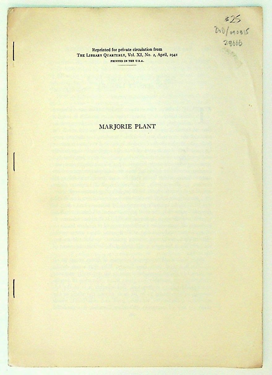Library Quarterly, 1941. Paperback. Very Good. Paperback. Reprinted from the Library Quarterly, Volume XI, Number 2, April 1941. Clean with minor wear to edges in white side-stapled wraps with black title to first page. Pages 186 to 199. BOB/090815.