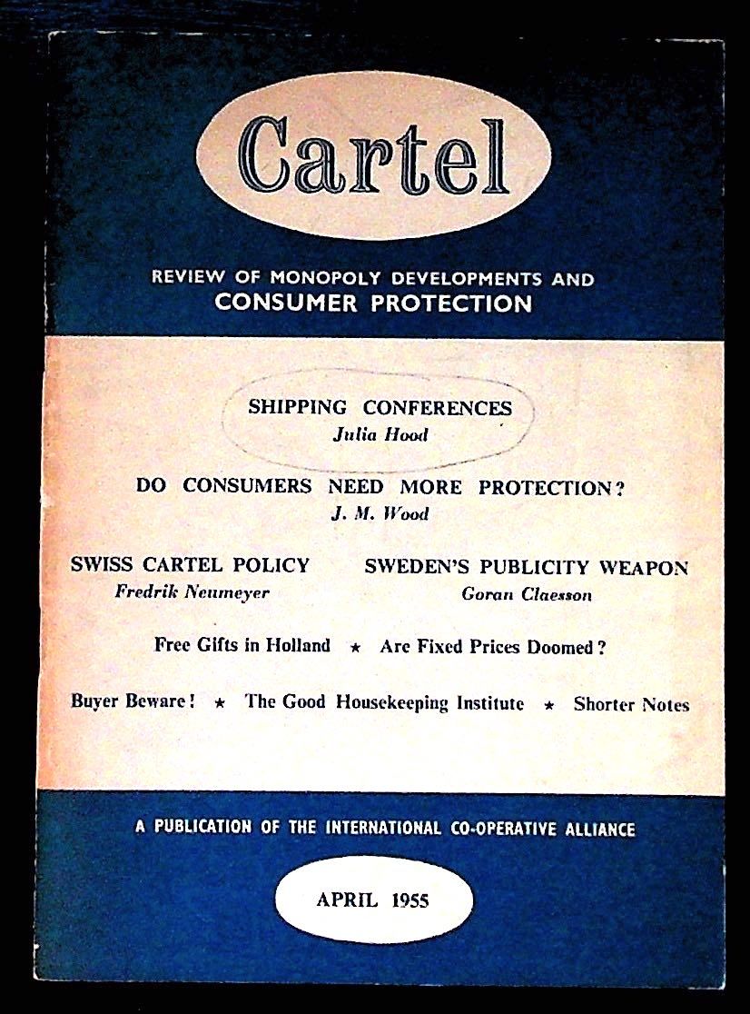 London: International Co-operative Alliance, 1955. Paperback. Very Good. Paperback. April 1955. Articles include: Shipping Conferences by Julia Hood, Do Consumers Need More Protection? by J.M. Wood, Swiss Cartel Policy by Fredrik Neumeyer, Sweden's Publicity Weapon by Goran Claesson and more. In side-stapled turquoise and white paper wrappers with title to front cover. Minor browning to covers and margins of pages. Pencil marking and minor rubbing to front cover, else clean. Pages 37 to 72. ECO/090815.