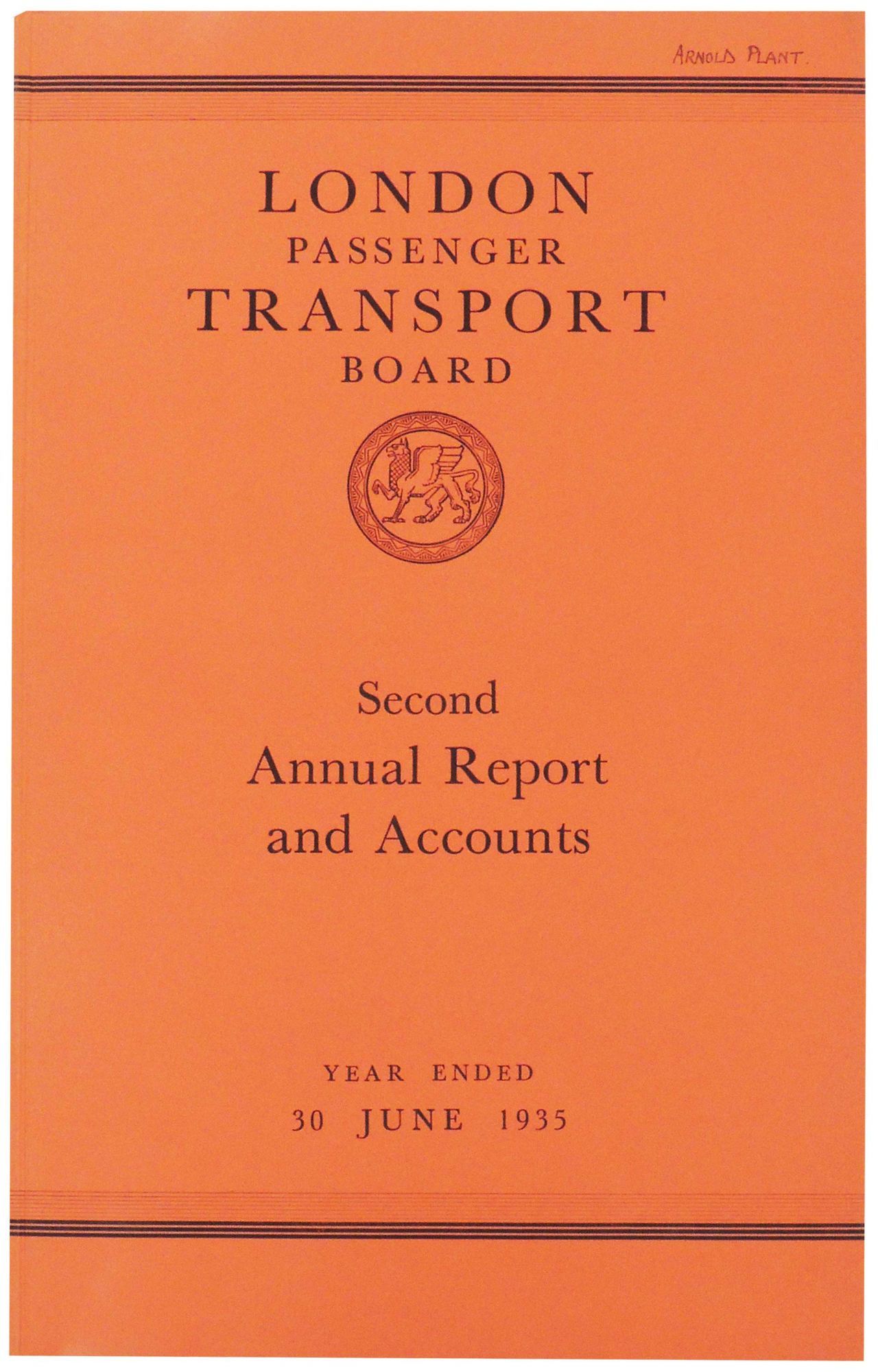 London Passenger Transport Board. Second Annual Report and Statement of Accounts and Statistics for the Year Ended 30 June 1935