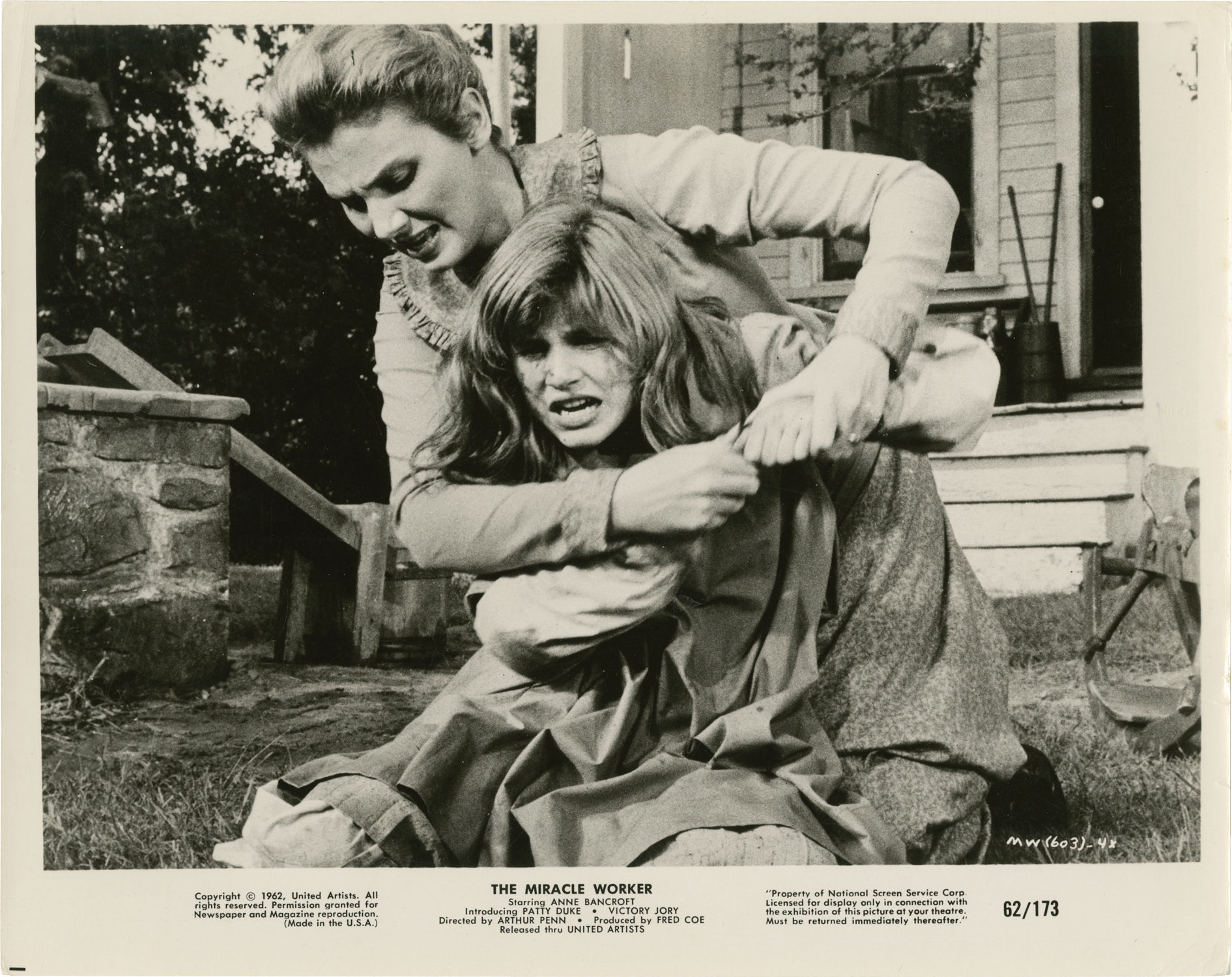 Beverly Hills, CA: United Artists, 1962. Seven vintage studio photographs from the 1962 film. Winner of both Best Actress and Best Supporting Actress Academy awards, for Bancroft and Duke respectively, and nominated for three others, including Best Director for Penn and Best Adapted Screenplay for Gibson, working from his Tony Award winning play.