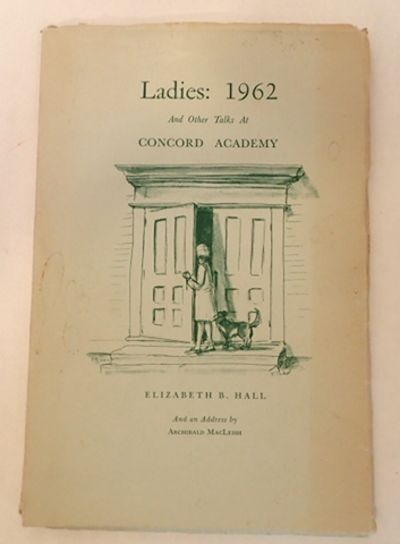 The Board of Trustees of Concord Academy, 1962. 1st Edition. Soft cover. Very Good. Tudor, Tasha. Privately published by Concord Academy (for girls) , this is a series of talks on the education of young American women by Headmistress of School, Elizabeth B. Hall. It includes an address that Archibald MacLeish gave the student body. Now, it is most collectible as it was illustrated by Tasha Tudor, and, as it was not commercially published, is rarely found. 8vo, printed paper covers, French-style, 89 pages, with a cover pictorial plus 12 text illustrations, one full page, all others half page. Covers slightly toned around edges, with small loss spine foot and moderate chipping / tearing around edges as is often seen with French-style covers. Uncommon.