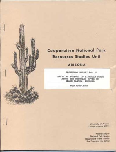 Ecology of Riparian Breeding Birds Along the Colorado River in Grand Canyon, Arizona. A Dissertation Submitted to the Faculty of the School of Renewable Natural Resources Division of Wildlife, Fisheries, and Recreation Resources (Cooperative National Park Resources Studies Unit, Arizona. Technical Report No. 25)