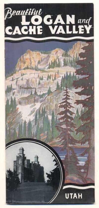 Logan, UT: Logan City and the Advertising Committee of the Logan Chamber of Commerce; J. P. Smith and Son, Printers, 1935. Original edition. Ephemera. Tall skinny octavo [23 cm] Stapled booklet with pictorial wrappers. The front wrap is illustrated with a painting of White Pine Lake by Everett C. Thorpe. Very good, with roughly a dozen tiny staple-sized holes in the front and rear wrap, as well as the last page. A touristic brochure with facts about Logan City and Cache Valley, as well as information on Logan Canyon. Illustrated with contemporary scenes of the area's buildings and activities.