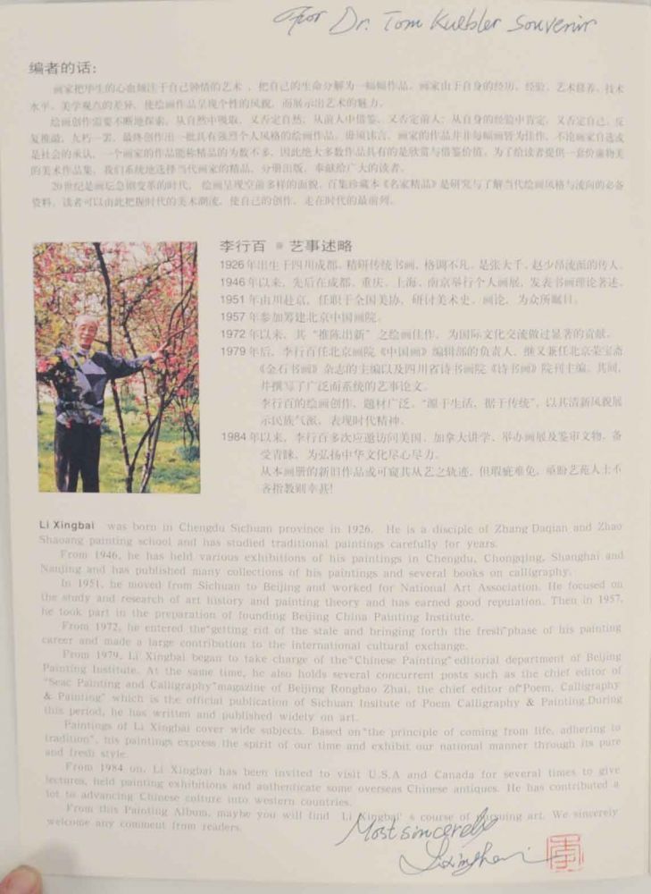 Chengdu: Sichuan mei shu chu ban she, 2000. First edition. Softcover. 16 pages. Text in both English and Chinese Includes numerous color images. A very near fine copy in stapled wrappers. Signed and inscribed by Xingbai in English with her chop as well. Scarce.