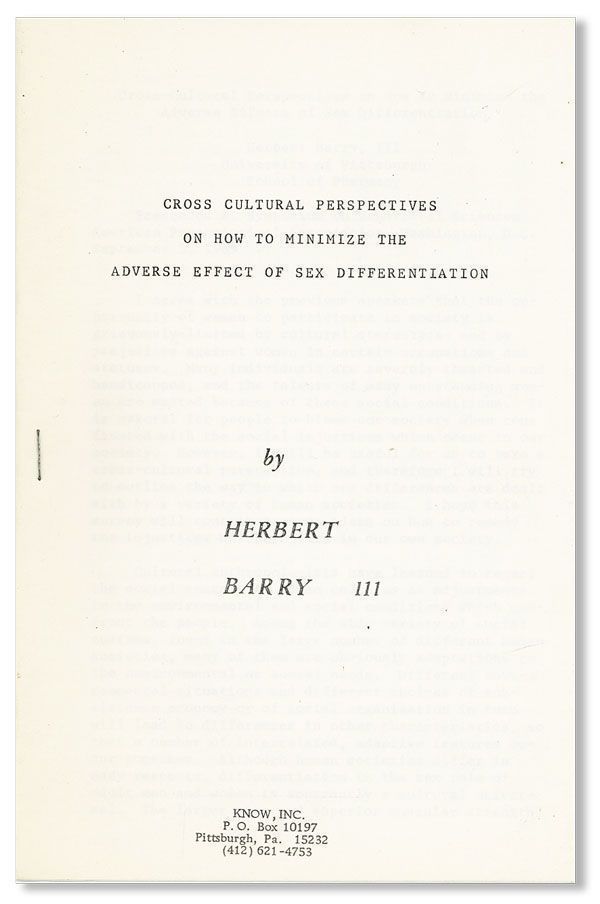 Pittsburgh: Know, 1969. First Edition. Octavo (21.5cm.); staplebound self-wrappers; 10pp. Fine. Paper presented at the Symposium on Behavioral Sciences, American Psychological Association, September 3, 1969.