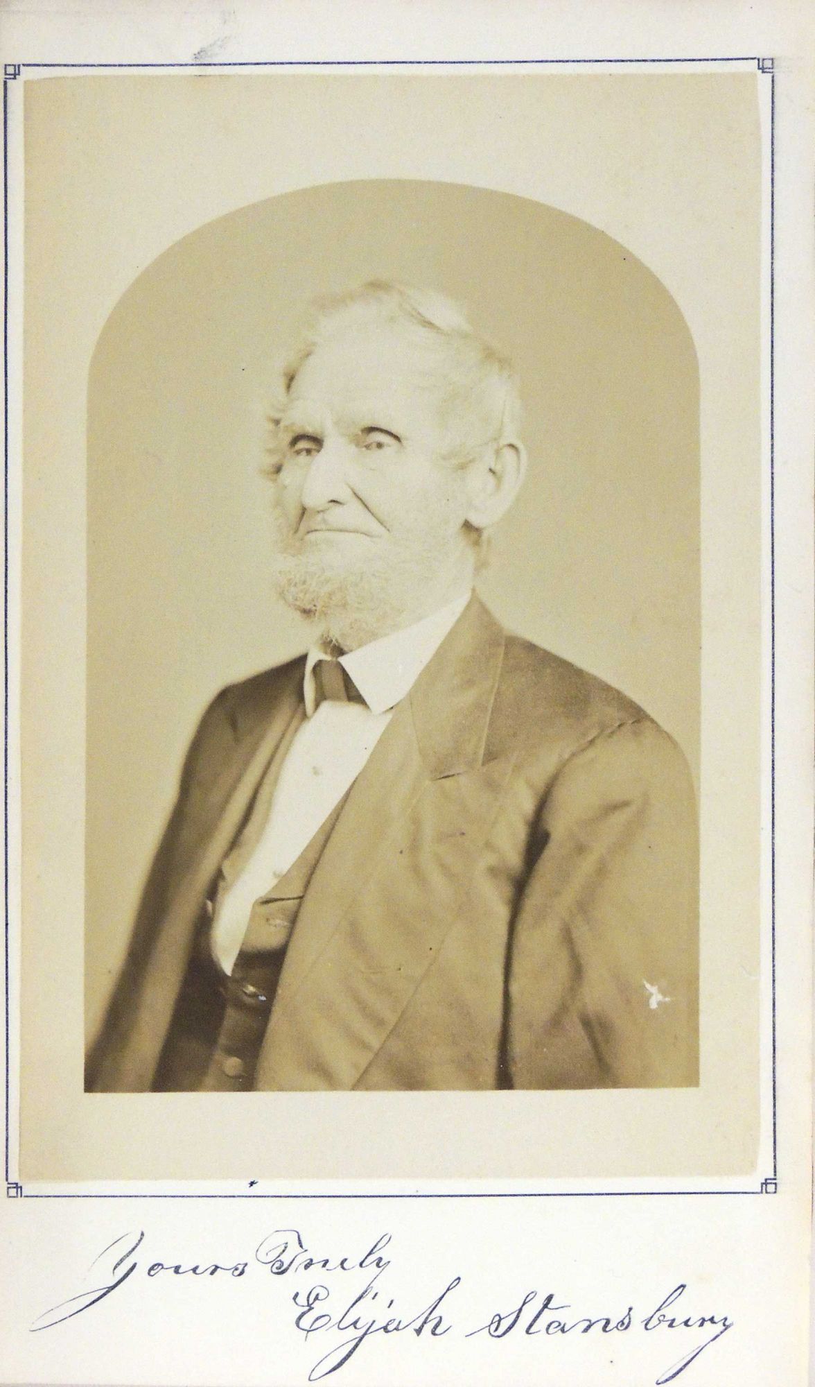 Very good in original dark brown cloth boards with gilt title to spine. Heavy chipping to bookcloth along hinges, corners, and edges of boards. Includes a tipped in page with a mounted original photograph of Elijah Stansbury that is signed by him. The presentation inscription is on the verso of this page. Interior is clean overall with occasional spots of foxing, and a few creases to early pages. 298 pages. BALT/010516.