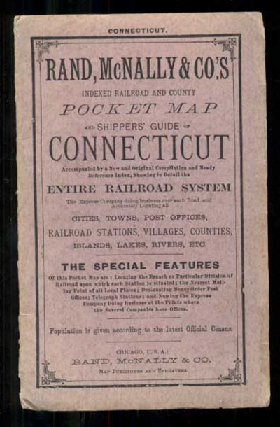 Rand, McNally & Co.'s Indexed Railroad and County Pocket Map and Shippers' Guide of Connecticut Accompanied by a New and Original Compilation and Ready Reference Index, Showing in Detail the Entire Railroad System. The Express Company doing business over each Road, and Accurately Locating All Cities, Towns, Post Offices, Railroad Stations, Villages, Counties, Islands, Lakes, Rivers, Etc. The Special Features of This Pocket Map Are: Locating the Branch or Particular Division of Railroad Upon Which Each Station is Situated; The Nearest Mailing Point of All Local Places; Designating Money Order Post Offices; Telegraph Stations; And Naming the Express Company Doing Business at the Points Where the Several Companies Have Offices. Population is given according to the latest Official Census