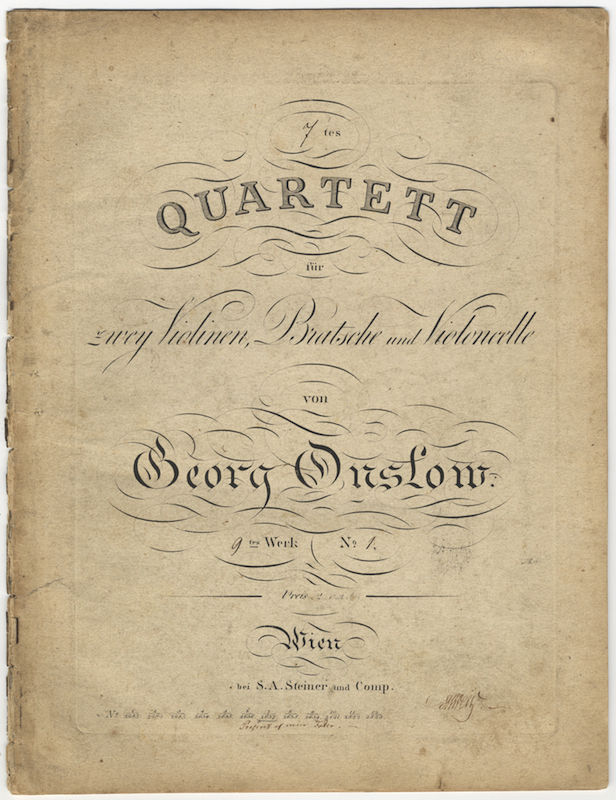 "[A] French composer of English descent... Onslow’s string quartets and quintets are the pinnacle of his output. His youthful quartets (opp.4, 8, 9, and 10) are notable for great flexibility of writing, exceptional rhythmic and melodic charm, and great vitality. Onslow achieves a personal synthesis of the various styles handed down from his predecessors: the ‘quatuor concertant’, deriving from the French tradition of the 18th century, the ‘quatuor brilliant’, in which the first violin is treated as a soloist, and the Viennese-style quartet, which he practised as a performer... Onslow’s work was particularly successful in Germany and Austria throughout the first half of the 19th century, as the many editions of his works show." Viviane Niaux in Grove Music Online.