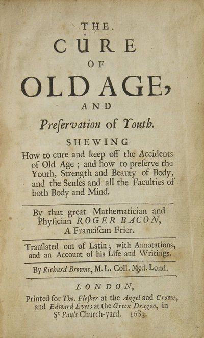 Old Age, and Preservation of Youth. By Roger Bacon, A Franciscan Frier. Translated out of Latin; with Annotations, and an Account of his Life and Writings. By Richard Browne, M. L. Coll. Med. Lond. WITH: A Physical Account of the Tree of Life, by Edw. Madeira Arrais. Translated likewise out of the Latin by the same Hand