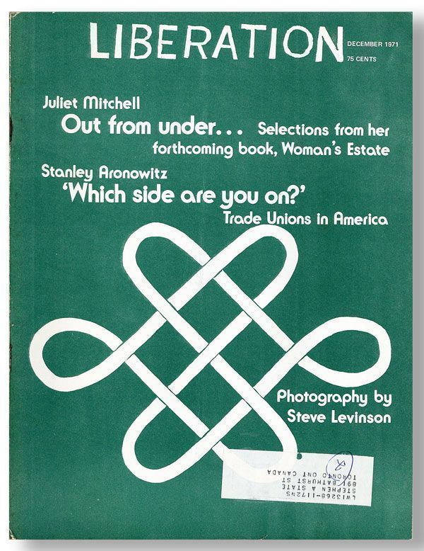 New York: Liberation Collective, 1971. First Edition. Single quarto issue. Staple-bound card wrappers; 51pp; illus. Address label affixed to front wrapper; Very Good. Monthly magazine of non-Marxist leftist opinion and commentary, co-founded by Dave Dellinger and A.J. Muste in 1956. This issue with articles by Juliet Mitchell, Stanley Aronowitz, Staughton Lynd, others; photographs by Steve Levinson.