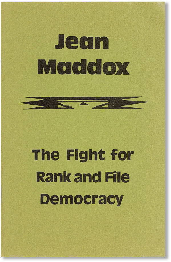 San Francisco: Union WAGE Educational Committee, 1976. First Edition. Octavo. Staple-bound card wrappers; 44pp; illus. Fine, apparently unread copy. Memorial pamphlet for San Francisco labor organizer Jean Maddox, founder of Union WAGE (Union Women's Alliance to Gain Equality).