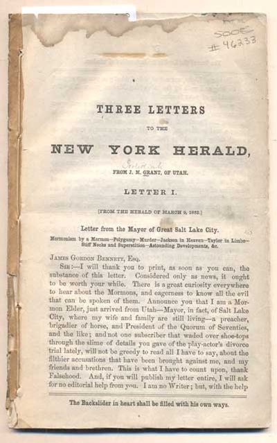 Three Letters to the New York Herald, from J. M. Grant, of Utah