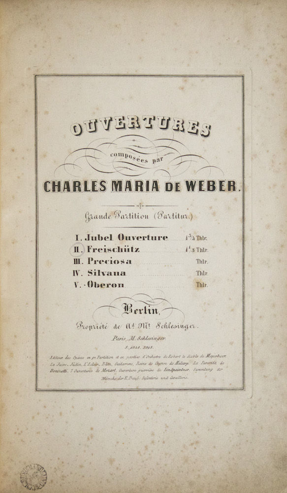 Ouvertures ... Grande Partition (Partitur) ... II. Freischütz 1 1/3 Thlr. [Full score]