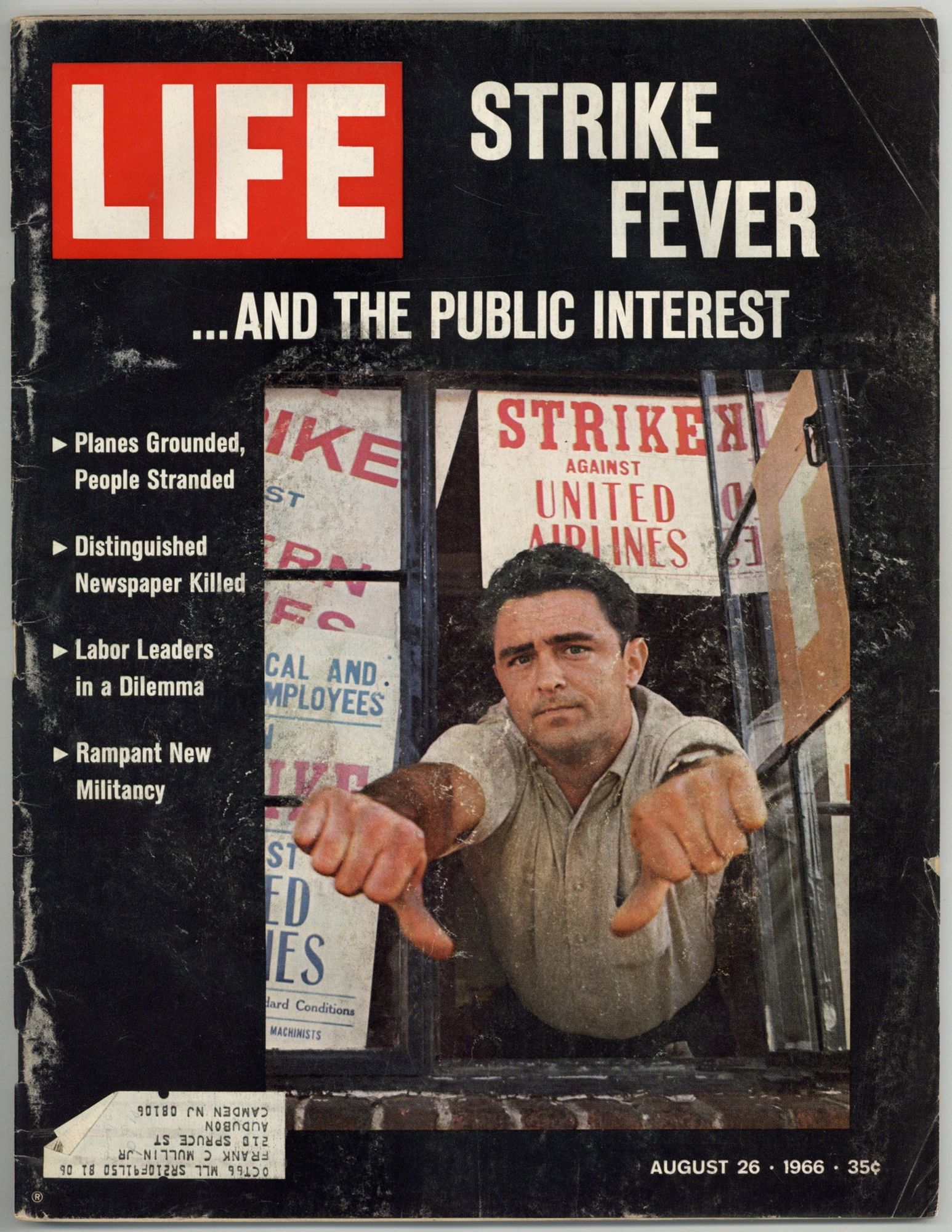 Chicago, Illinois: Time Inc, 1966. Softcover. Very Good. First edition. Folio. 94pp. Pictorial stapled wrappers. Pages slightly age-toned, front wrap moderately rubbed with a few small tears and top corner creased, very good with address label on front wrap. Front cover: "Strike Fever ...and the Public Interest"; also includes items on Raquel Welch, the youth invasion of Sunset Strip, England's first Wold Cup win and more.