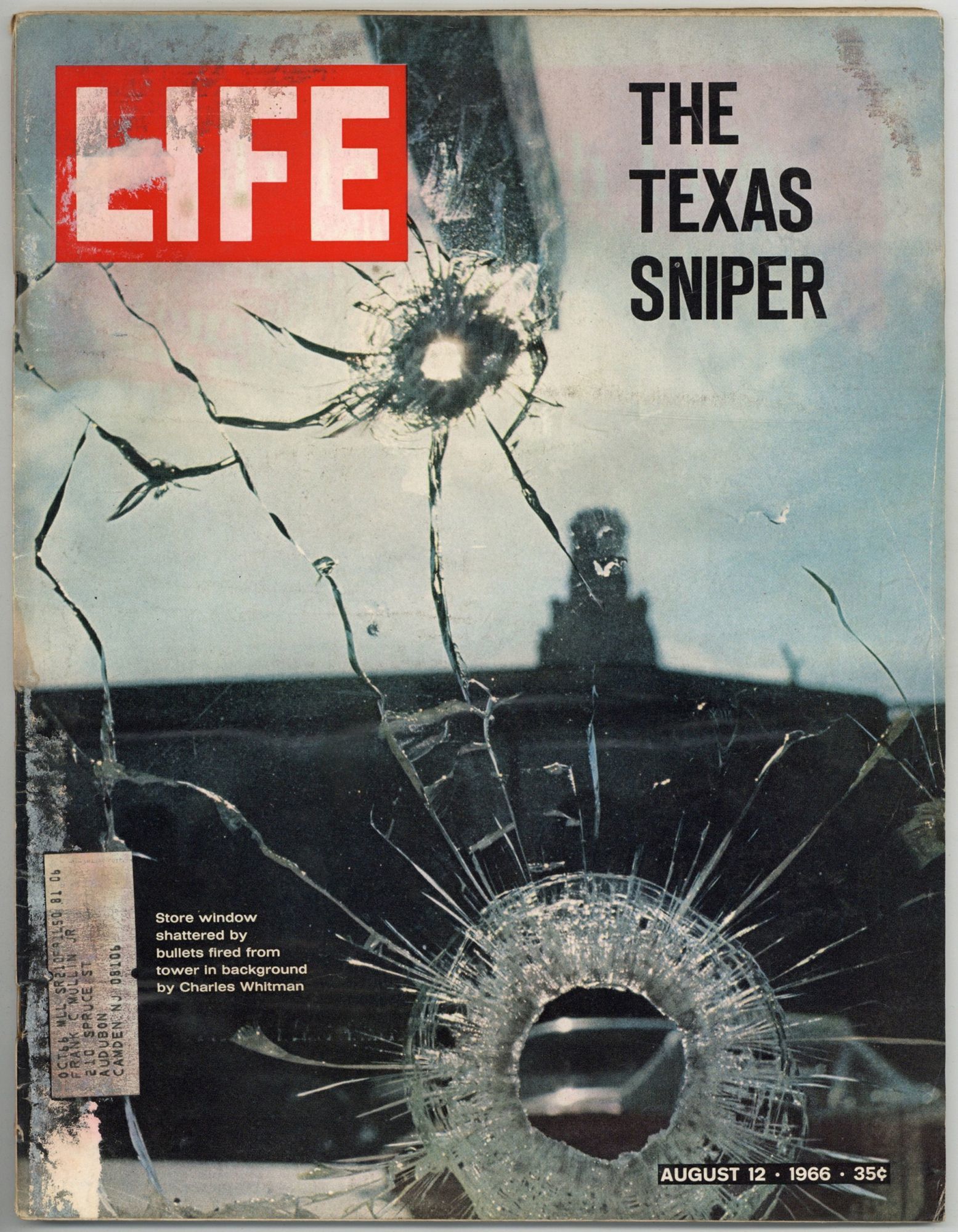 Chicago, Illinois: Time Inc, 1966. Softcover. Good. First edition. Folio. 78pp. Stapled pictorial wrappers. Most pages and covers with moderate water staining, covers rubbed, staples oxidized, good only with mailing label on front wrap. Cover: "The Texas Sniper.