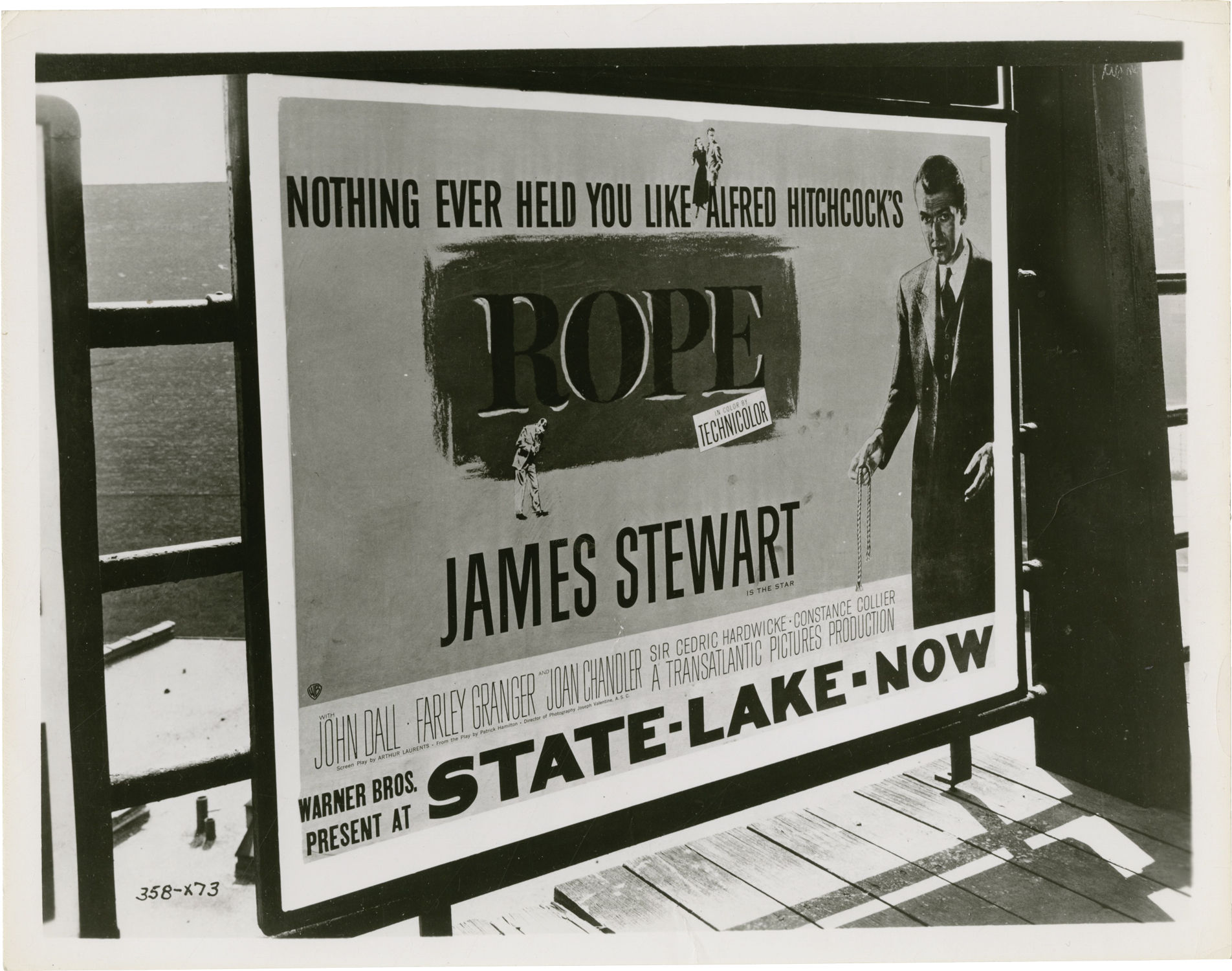 Burbank, CA: Warner Brothers, 1948. Vintage reference photograph of a boardwalk poster advertising the 1948 Alfred Hitchcock film.