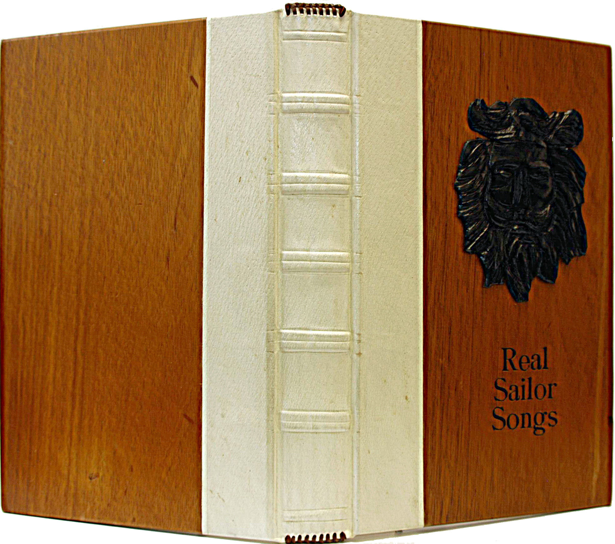 200 illustrations. Hand “hammered” iron face of a sailor on the front wooden cover made by blacksmith artist Petr Baloun. Tight, bright, and unmarred. Leather spine, wooden boards, iron sculptural onlay. 4to.