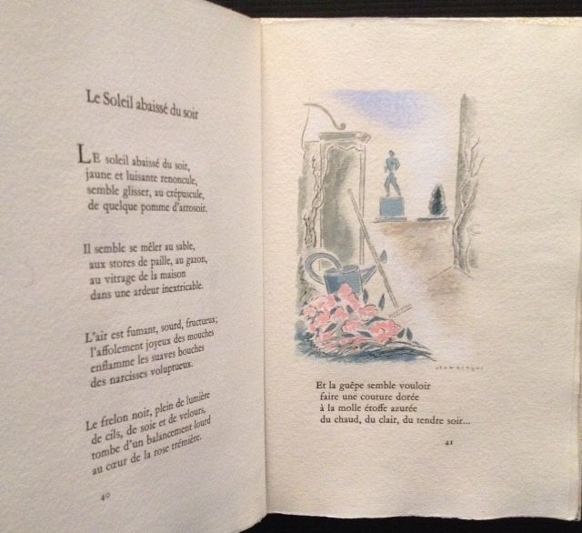 Lausanne, France: Edition des Freres Gonin, 1935. Original wraps. Near Fine. Jean Berque. #40 OF ONLY 150 COPIES ISSUED SIGNED BY THE ILLUSTRATOR JEAN BERQUE at the limitation. A bright, crisp copy to boot in its cream-colored wrappers. Clean and Near Fine, with lovely color prints complementing the text. Attractive layout and typography by Philippe Gonin. Quarto, loose, unbound signatures as issued. All contained in a pebbled, vellum-backed (and gilt-titled) chemise and matching slipcase.