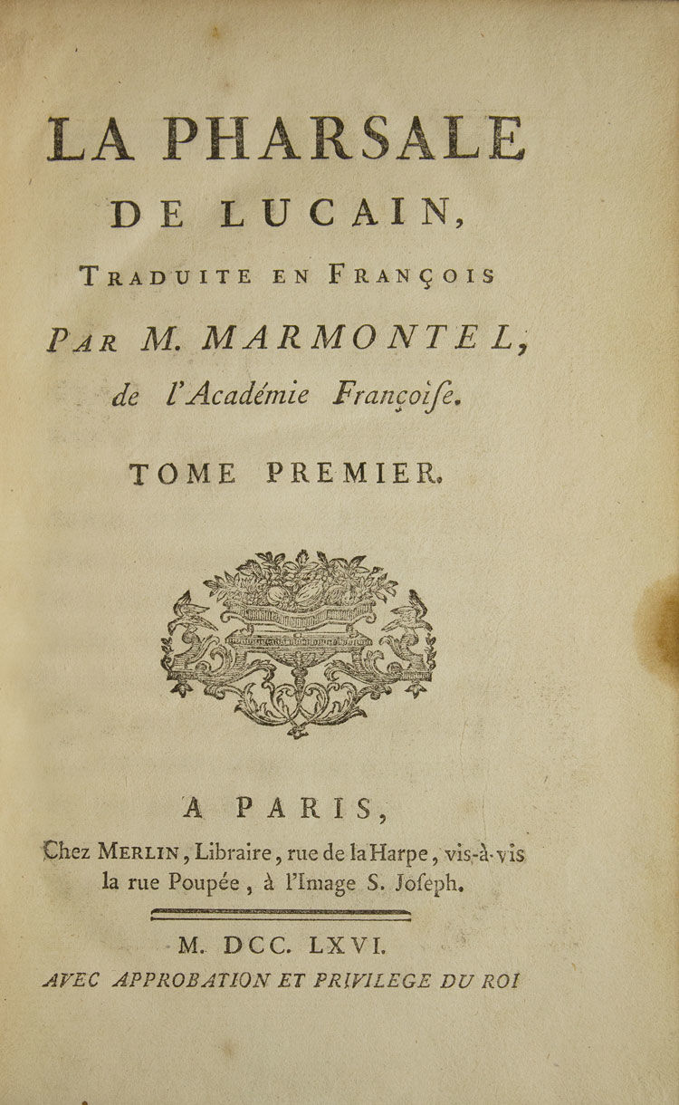 La Pharsale de Lucain. traduite en François par M. Marmontel