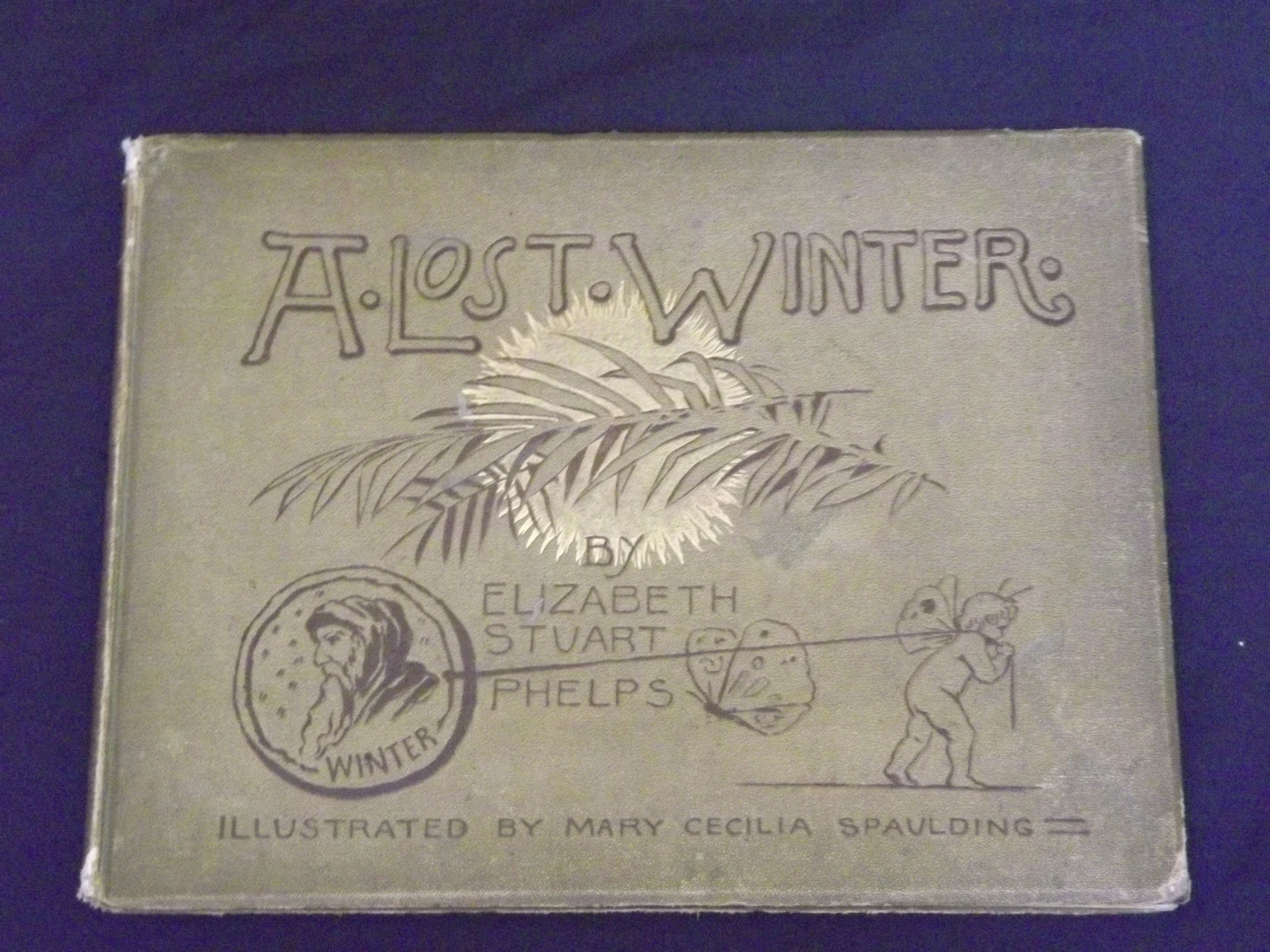 Square folio (14" x 11"), cloth, illustrated. Binding a little worn, especially at extremities, pages slightly loose, normal aging and darkening; otherwise about very good. Outstanding illustrations by Mary Cecilia Spaulding. Elizabeth Phelps (1844-1911) was an ardent feminist that challenged the traditions of the day. While the title is about winter, the story and illustrations are more about spring. Most of the illustrations are about flowers and tropical scenes. Requires extra postage.
